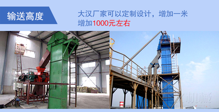 大漢鏈斗式提升機(jī)可以按照用戶的輸送高度要求設(shè)計(jì),一般情況下,增加一米,鏈斗式提升機(jī)價(jià)格就會增加1000元左右。