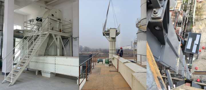 陜西客戶的復合肥廠原有生產線采用傳統螺旋輸送機,存在提升高度不足、潮濕物料易殘留腐蝕、多設備銜接不暢等問題,為適配新生產線,定制了3臺板鏈式斗式提升機,解決40米高落差輸送及復雜工況適配需求。針對復合肥含酸堿成分、部分物料含水量高的特性,設備主體選用304不銹鋼材質,料斗采用防粘附PP材質,有效杜絕銹蝕與物料結塊堵塞。設備同步適配混合機、造粒機,實現全自動化流程。