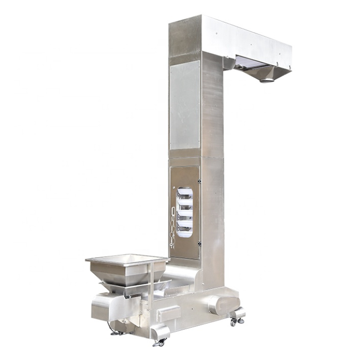 鏈條式Z型輸送機(jī)通常配備板鏈或附件鏈條,較高的承載能力和抗沖擊性能。輸送高度范圍可達(dá)2-15米以上,常用鏈條寬度為300–600mm,載重能力可達(dá)2t/h以上,適用于生產(chǎn)線負(fù)荷大、袋體較重或大容量液體袋的液體包裝場景。