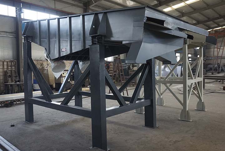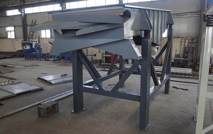 物料從給料機均勻地進入篩分機的進料口,在振動電機的激振下,向出料口方向邊跳動邊篩分,通過多層篩網篩分出數種產品和不合格的篩上、篩下物,分別從各自的出口排出,流入料倉或盛料筒。